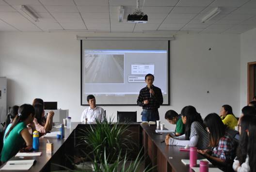 在报告会中,陈兵旗教授非常形象的通过机器视觉就像人的眼睛的比喻引入了机器视觉技术的应用研究的主题。报告分为两大部分,第一部分陈兵旗教授通过自己对机器视觉技术研究领域的实践进行分类讲解,其中详细介绍了农田机器人行走路线检测和蜜蜂轨迹跟踪及舞蹈解析。第二部分为视觉技术中的部分导航产品的视频和程序演示,生动形象的演示了机器视觉技术在生活中的运用,也突出了机器视觉技术的实用性和可发展空间。最后陈兵旗教授与研究生们互动,解答研究生们在报告会中所涉及问题的疑惑,与会的研究生们积极踊跃提问,表现了sm调教