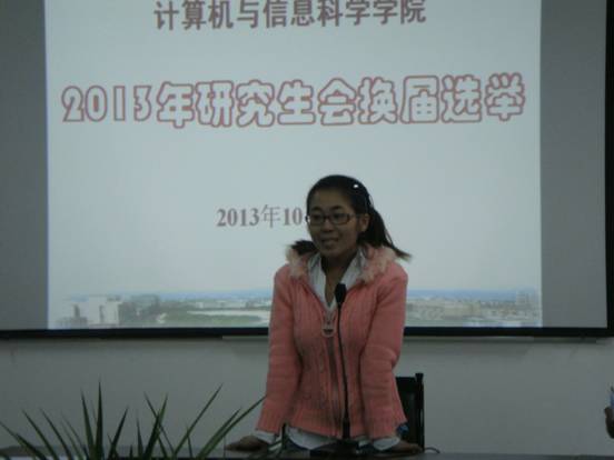 研究生秘书李明勇老师以及11、12和13级研究生出席了此次大会,大会由研究生会文娱和体育部部长陈美莲主持。