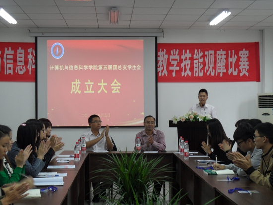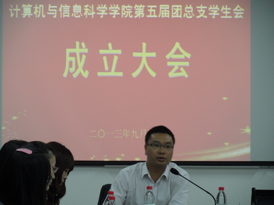 党总支书记刘军,党总支副书记杨宇,团总支副书记张敬,辅导员朱嘉洁、傅帆、辅导员助理(研究生)王节、相琳等领导和老师出席,全体第五届团总支学生会干部参与。大会由张敬老师主持。