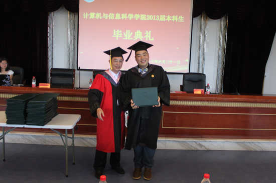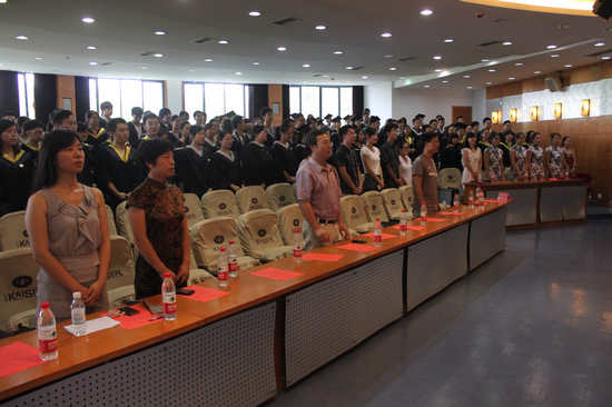 首先,杨宇副书记宣布毕业典礼的正式开始,2013届毕业汇报专题片:《来不及说再见》为典礼拉开了序幕。在座的235名毕业生安静地观看着,四年充满酸甜苦辣的大学生活在脑海中重演,思绪万千。在这怀旧的气氛里,迎来了毕业典礼最为庄重的一刻。魏延副院长宣读授予2013届毕业生学士学位的决定,并由马燕院长为毕业生授予学士学位、颁发学位证书并合影留恋。毕业生们郑重地接过自己的学位证书,历经大学四年洗礼的他们越来越成熟稳重。紧接着,马燕院长和刘军书记为sm调教