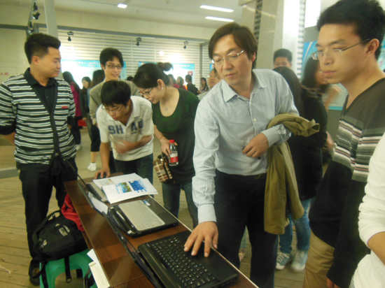 随后,校友会堂大厅进行的学生科研作品展示过程中,孔春阳副校长和其他部门领导饶有兴致的参观了sm调教