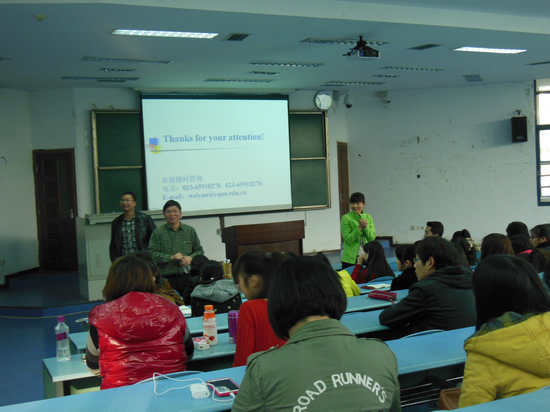 研究生工作的魏延副院长以“抓住机遇,备战考研”为题,分别从“2013考研回放”、“为什么考研”、“考研应该准备什么”、“sm调教简介