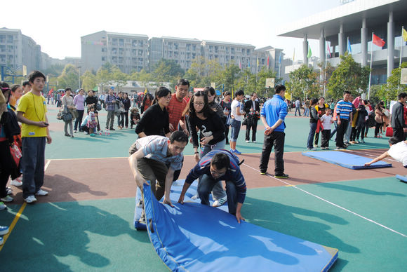 联合举办的庆“三八”教职工趣味体育活动在大学城校区篮球场隆重举行。