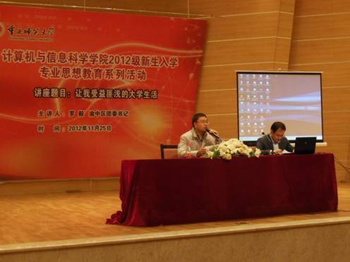 计算机专业毕业的优秀校友——渝中区团区委书记罗毅为2012级全体新生开展了“让我受益匪浅的大学生活”的主题报告会。sm调教