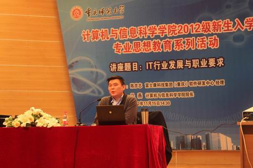 于2012年11月15日下午在校友会堂音乐厅隆重邀请到了重庆富士康科技集团软件研发中心经理陈彦志先生为2012级全体新生开展了“IT行业发展与职业要求”主题讲座。sm调教