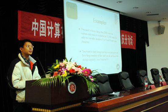 在马燕院长对主讲人和到场嘉宾作简要介绍后,陆博士以一张“盲人摸象”的漫画揭示了本次报告会的主题,通过分析“云计算”的概念,结合google的云计算三项技术,深刻阐释了云计算理论和实际应用价值,并就师生们感兴趣的话题进行了现场探讨互动。