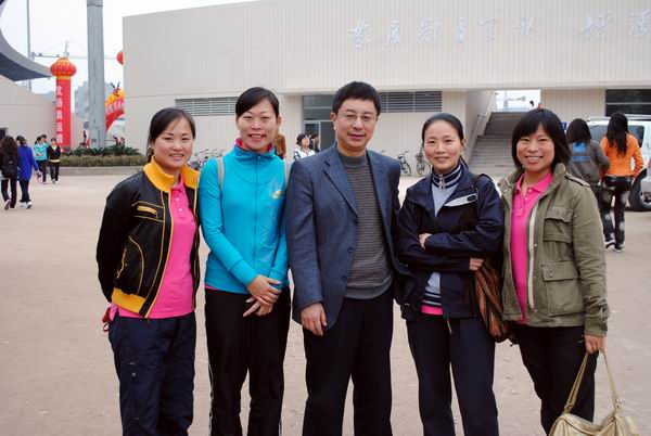 院领导与4*100米教工女队第二名获奖归来的队员合影