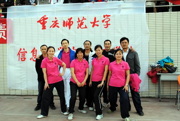 双双获得男子、女子4*100米接力赛第二名教工队合影