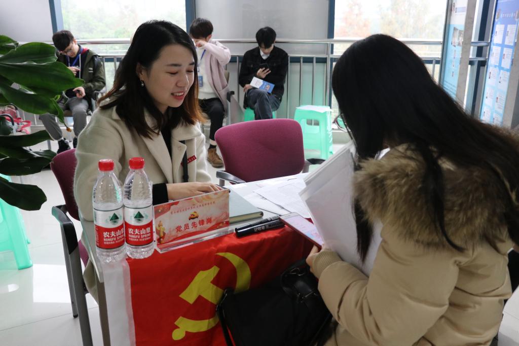 还分别设定就业指导服务站、党员先锋岗、青马服务站,旨在为来应聘的同学解答就业疑问、咨询相关信息、提供有效帮助。