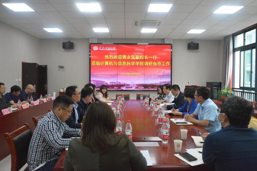 历史沿革、专业和学科发展、人才队伍建设、学生工作、经费使用、采购及资产管理等工作进行汇报,重点围绕深入开展主题教育调研题目——贯彻落实新发展理念和立德树人根本任务,以工程教育改革助推高质量软信人才培养、工程教育认证工作、主题教育专项整治等进行了详细介绍。期间,黄校长就工程教育认证、校企合作等工作进行了关切询问和交流互动。