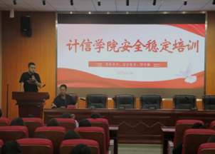 辅导员胡绍宇主持,学校党委保卫部李鑫处长主讲此次培训。