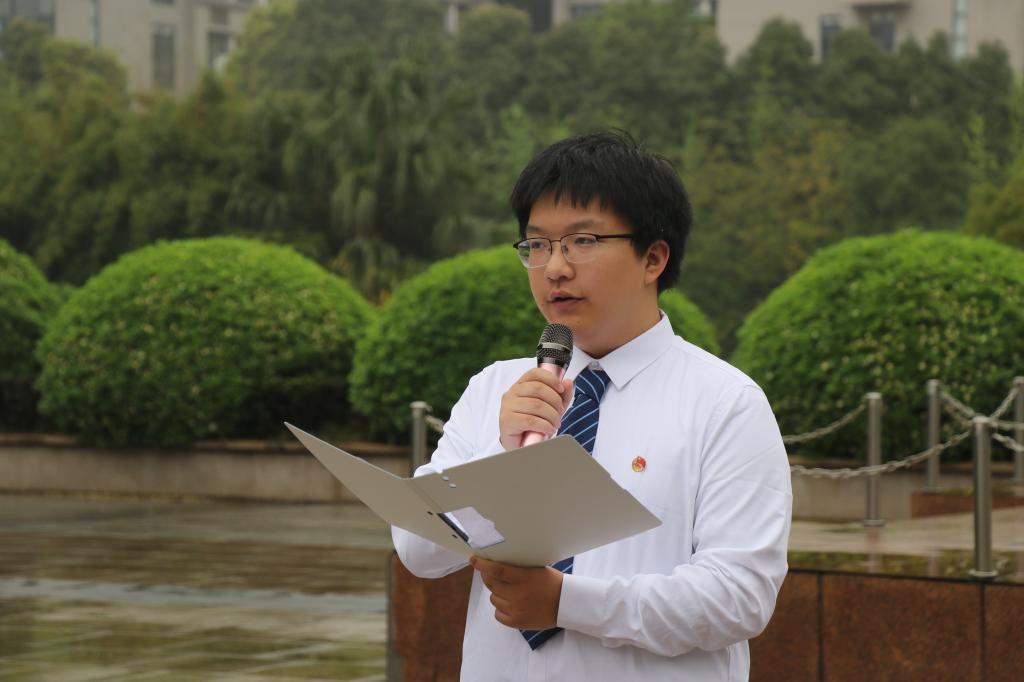 学生代表袁廙发表感言,讲到那一抹鲜艳的中国红是当代青年勇往直前、追求真理的动力源泉。他坚信,在国旗下成长将使新一代大学生更加坚定信念,为祖国的繁荣昌盛贡献自己的力量。