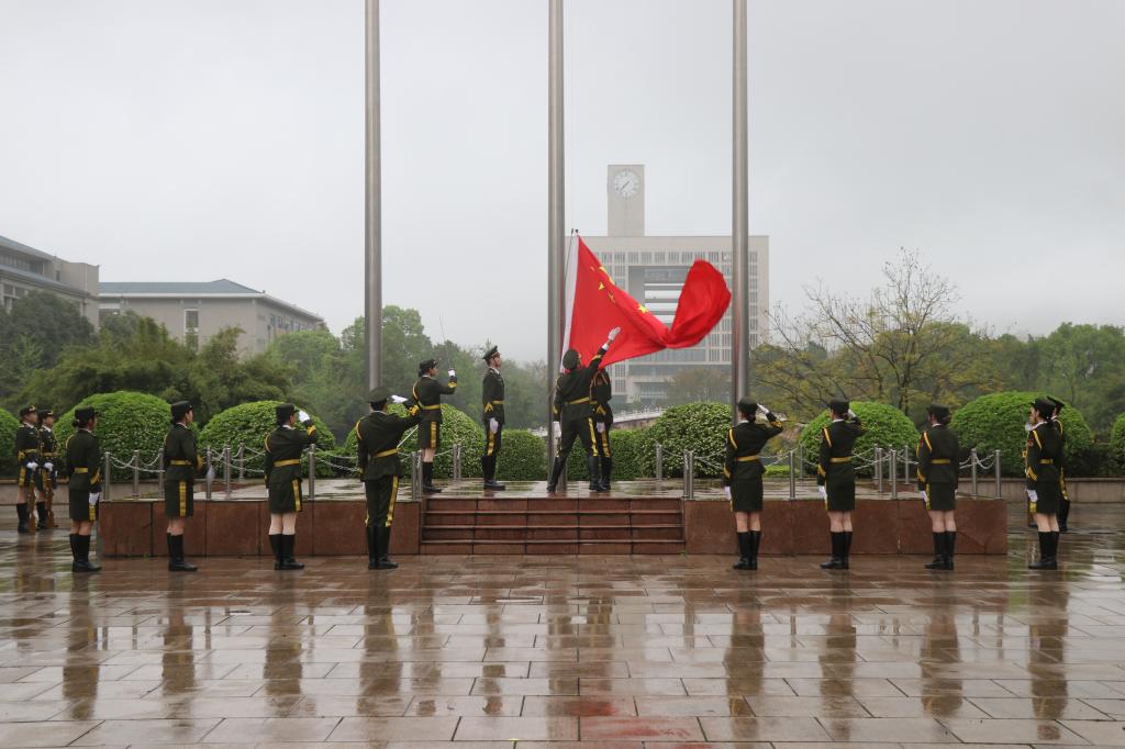 领导班子、分团委书记钟华、全体辅导员和2023级学生。升旗仪式由党委副书记李若岩主持。