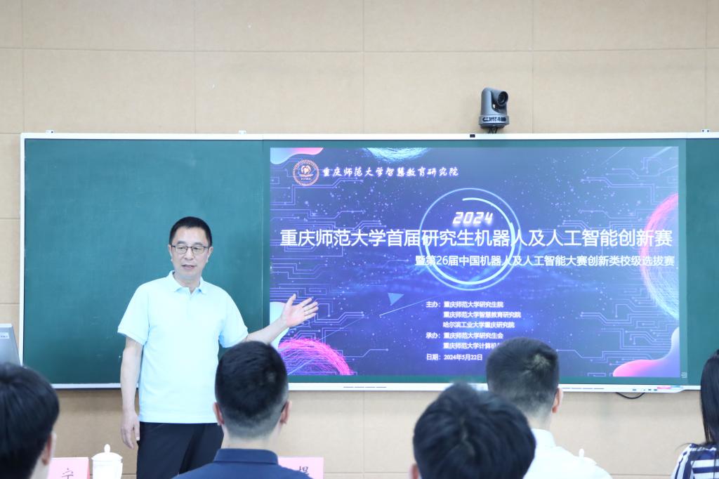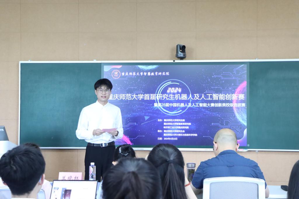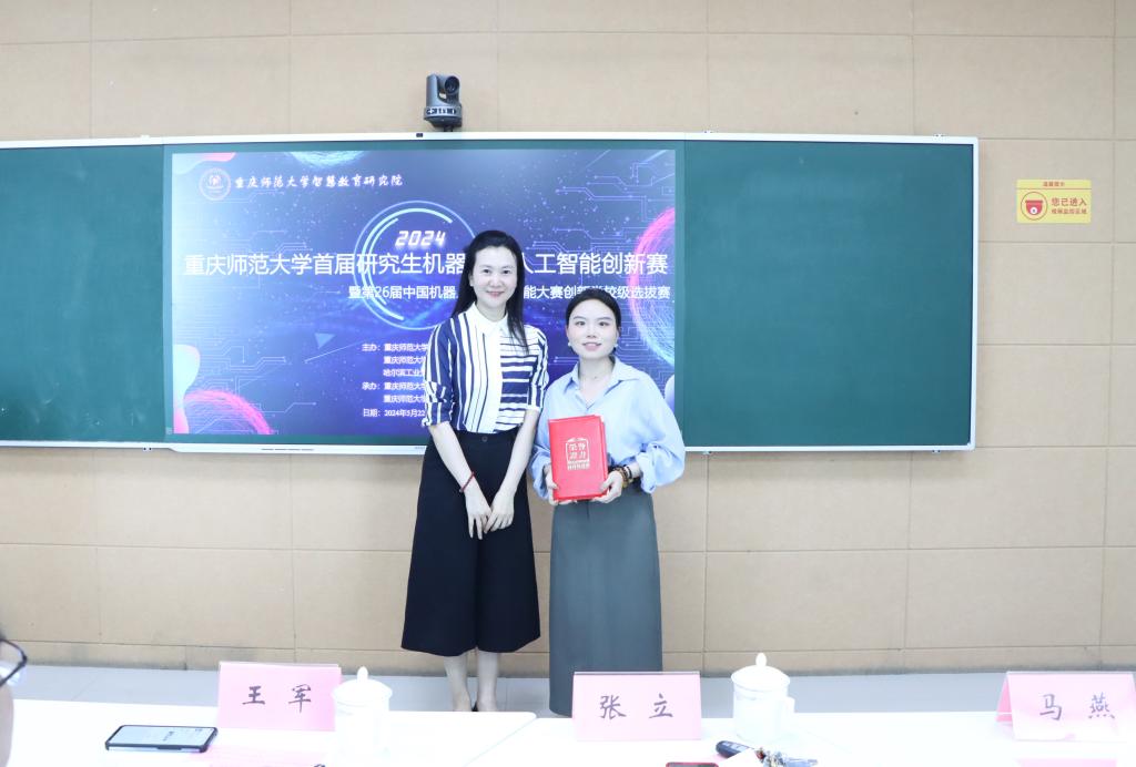 发出倡议,希望更多同学可以加入到人工智能及机器人研究团队中,营造更浓厚的创新氛围。智慧教育研究院马燕院长表示,智慧教育研究院将深入推进“人工智能+”融合学科创新,着力打造“课程教学-实习实践-创新竞赛”的三融合创新能力培养体系,进一步提升研究生的创新素养与创新能力。闭幕式上宣布了选拔赛的比赛结果,进行了颁奖。
