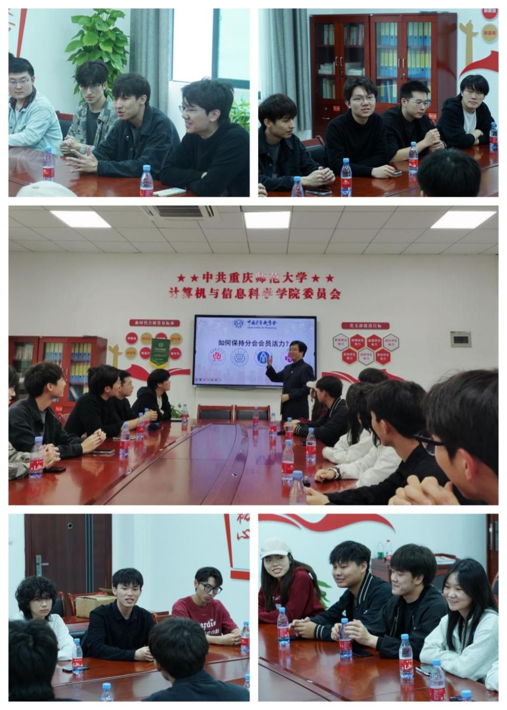 学生分会邀请了来自重庆大学、西南大学和重庆电子科技职业大学的学生分会代表,成功举办了一场四校联合的参观交流活动。此次活动中,各学生分会分享了工作经验,加强了重庆地区CCF学生分会之间的联系,促进了重庆市CCF学生分会的合作与交流。