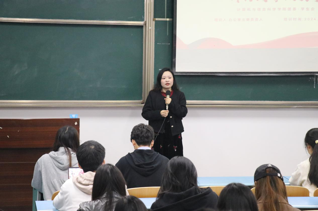 团委书记钟华主讲,学生会办公室主要负责人余柯蓉主持,团委学生会全体工作人员参与。