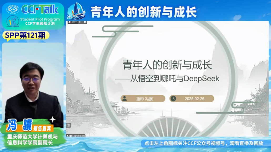 在互动环节,针对“非名校学生如何突围”的提问,冯骥给出务实建议:“技术平权时代,开源社区就是最好的导师。建议从研读DeepSeek的相关技术起步,结合CCF数字图书馆的权威资源,构建自己的知识图谱。”关于自驱力培养,他分享独特心得:“定期进行‘数字排毒’,降低多巴胺刺激阈值,在深度学习中获取心得体验。”