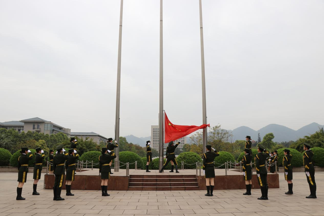 全体师生同唱国歌,歌声坚定而有力似澎湃浪潮,彰显着计信青年的蓬勃朝气与拳拳爱国之心,在校园上空久久回荡。