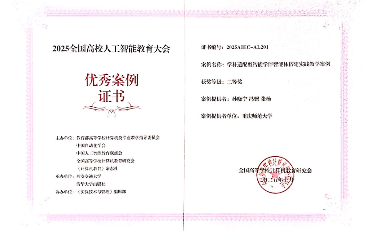 在人工智能课程建设与教学创新方面的扎实积累与突出成效。