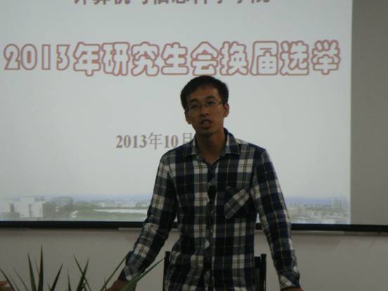 研究生秘书李明勇老师以及11、12和13级研究生出席了此次大会,大会由研究生会文娱和体育部部长陈美莲主持。