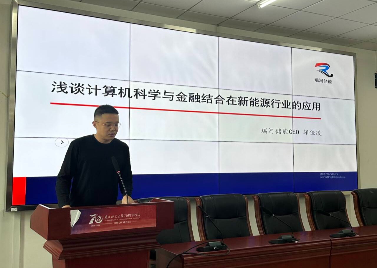 学科专业、人才队伍、对外交流服务等基本情况,对本届学生的人才培养情况进行了重点介绍。瑞河储能首席运营官邹佳凌博士分享了自身求学经历,介绍了计算机科学与金融在新能源行业的深度结合,强调企业对人才的需求定位以及大学生职业规划的重要性,他认为大学生应该心怀“国之大者”立大志,抓紧时机学好专业技术,让未来在大国重器、关键领域等贡献自身力量。