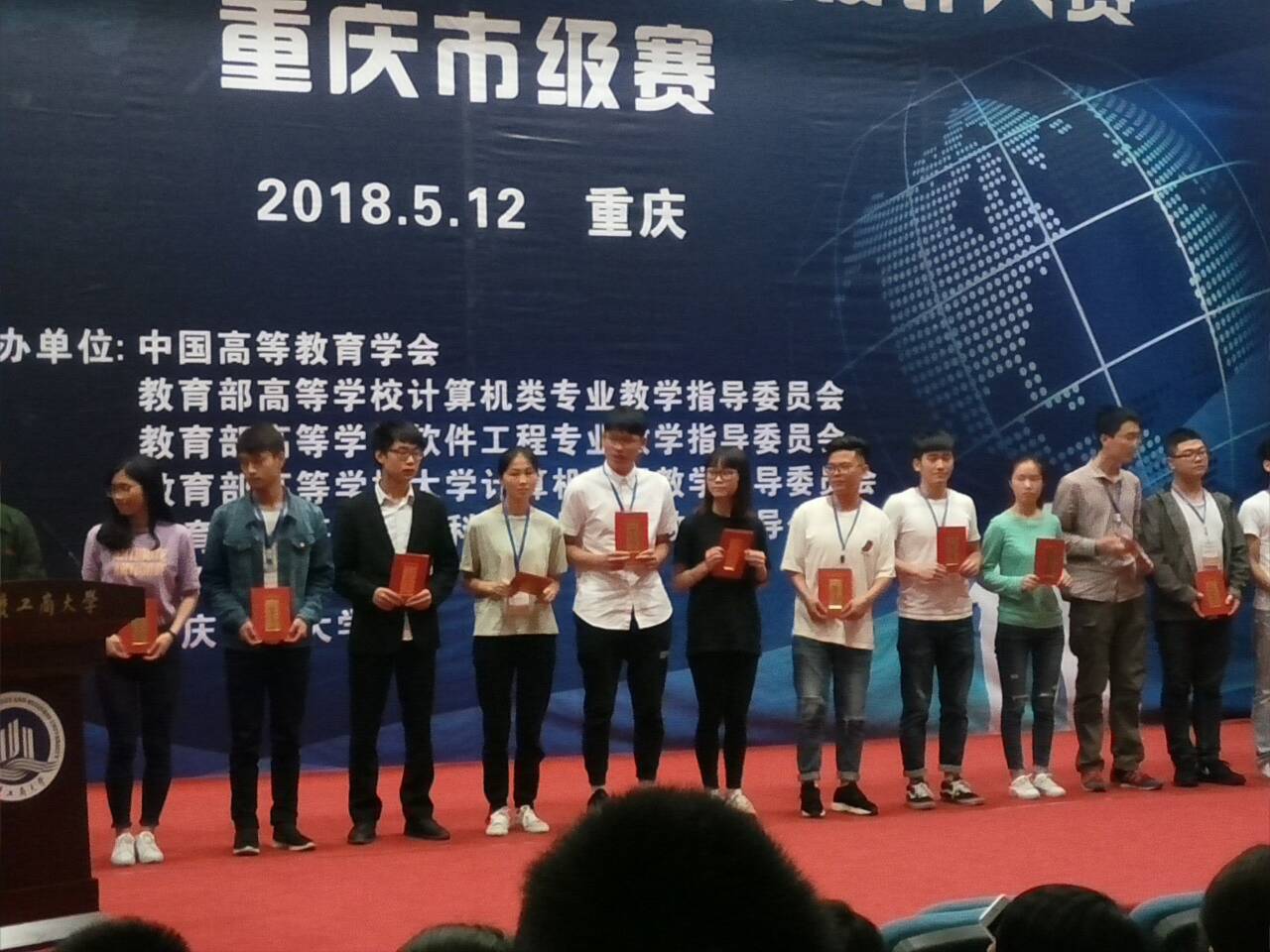 由唐万梅老师、李明老师指导魏欣、翟非同的“笑圆”社区项目获得市级一等奖;由唐万梅老师、夏扬老师指导何小琴、罗术于、许林玉的易卓项目,罗凌老师指导吴鹏飞、李园、陈明婕的Aplan项目以及王硕秋、郑添萱的NO.W.HERE项目分别获得市级二等奖;由韩刚老师指导陈璇、何作鑫、盖继扬的飞鸟校园快递代领项目,罗凌老师指导张智勇、彭飞翔、邓淑方的“时间胶囊”网站项目,韩刚老师指导胡倩蔚、陈晨、曾贵花的MAKEUP购物网站项目,杨卫明老师指导林智健、李虹霖、步露花的高校本科毕业论文管理平台项目、章娜、文柯蕴、何家欢的重庆,从你的世界路过项目,唐万梅老师、夏扬老师指导章杰、方圆、贺旭超的易购——智能购物车项目,唐万梅老师、刘俊峰老师指导龚锋、黄佩妍的易居项目,龚伟老师指导雷娜、贺文江的TelephoneBook项目,唐万梅老师、李明老师指导王典、杨杰之、郭尔川的基于Android平台的课堂助手App项目以及龚伟老师指导李章玉、罗茂瑛、周鑫的阡陌物流项目均获得市级三等奖。