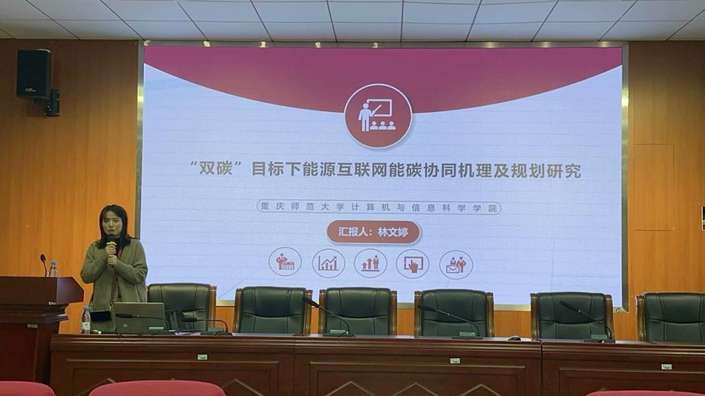 林文婷博士作题为““双碳”目标下能源互联网能碳协同机理及规划研究”。她指出在“双碳”目标的指引下,能源互联网需要在保障能源安全供应基础上,进一步优化能源结构,降低碳排放强度。进而对“双碳”目标下能源互联网的能碳协同机理及规划策略进行了详细讲解。