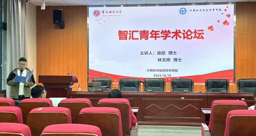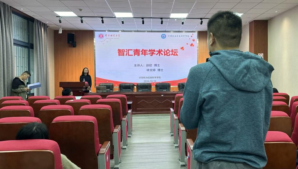 论坛伊始,桑彬彬老师分别介绍了徐欣博士和林文婷博士的学术背景、研究方向等。随后,两位博士教师围绕其各自研究方向及研究成果进行汇报。徐欣博士作题为“图表示学习及其在科技大数据中的应用”。她主要指出了社交网络、知识图谱、生物网络等真实世界建模成的非结构化数据——图网络的表示学习仍受到数据稀疏性的严重困扰,进而提出表示学习和图表示学习的研究进展,并以科技大数据为基础,将介绍图表示学习在科技数据中的应用与智能分析方面做了详细讲解。