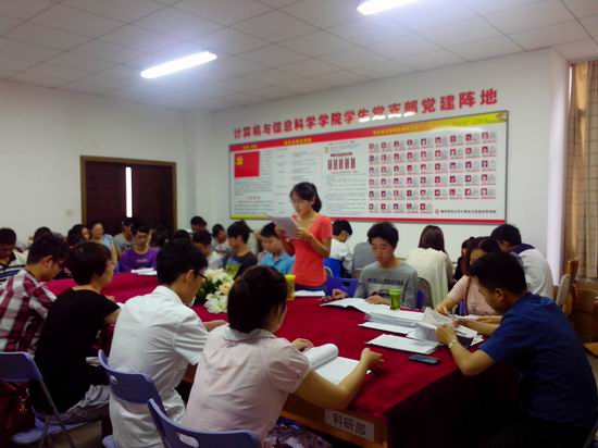 于集贤楼226办公室召开支部大会,会议讨论是否吸纳王智鹏、幸定军、孔妍君等同志为中共预备党员。大会应到正式党员19人,实到17人,符合支部大会既定要求。会议由学生党支部书记张敬老师主持。
