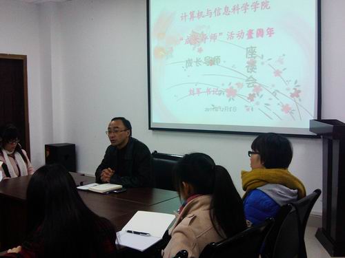 于2011年12月8日下午1:00在集贤楼233办公室举办了“成长导师”一周年活动学生交流会。会议由sm调教