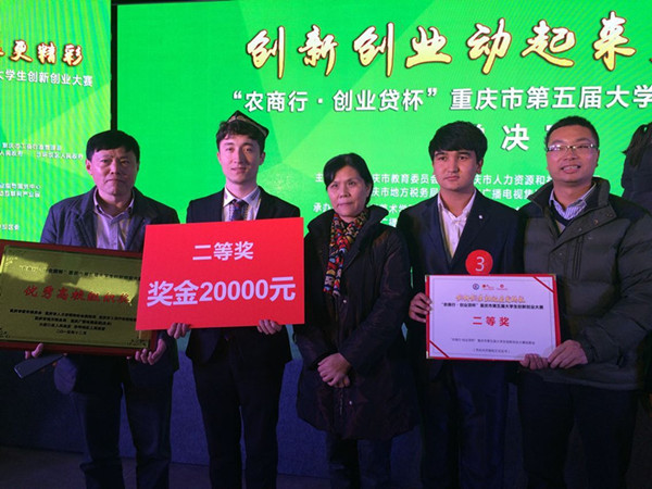 2015年12月14日至15日,由重庆市教育委员会、重庆市人力资源和社会保障局、重庆市工商行政管理局、重庆市地方税务局等单位主办的“农商行•创业贷杯”重庆市第五届大学生创新创业大赛总决赛圆满落幕,sm调教 2013级学生艾克拜尔•艾沙所负责的项目(新疆特色农副产品)荣获二等奖。