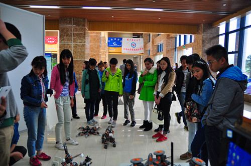 特色的以C语言程序为基础设计的七项科技作品。他们分别是蜘蛛形的“六组机器人”、遥控“足球运动员”、通过测间距来感应最终达到平衡的“平衡感机器人”、捡棒球的“拾球运动员”、可以自动写书法的“小书童”、“电子狗”以及一款高效的小学生学习软件。参赛学生通过演示详细地为学校领导及同学介绍了每一项科技作品的功能。期间,sm调教