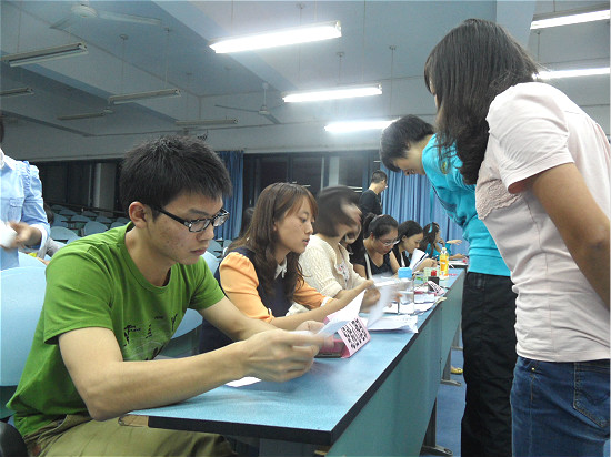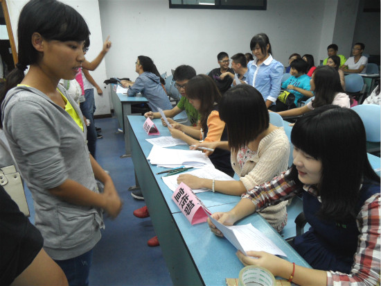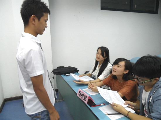 此次招新采用分部门面试的方式进行。分别由各部门部长和副部长担任面试官,主席与书记负责协调和督导各部门工作。同学们根据自己爱好和特长积极申请加入各部门。不论是填写报名表的认真,还是等待进入面试的紧张,都充分体现了同学们对这次招新活动的重视,同时也表现了自身的良好素质。在面试过程中,同学们都拿出自己的“看家本领”,从容自信的与面试官进行交流。而各位部长与副部也根据同学们的自我介绍有针对性的提出一些问题来深入了解和考查应试者。整个面试过程持续了近三个小时,竞争程度异激烈常。。最后,面试官结合本次应试者的综合表现,经过仔细思考讨论和沟通协商,最终确定了各个部门的人员录用。