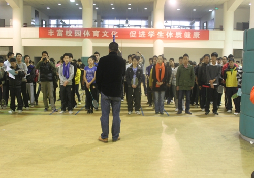 为丰富校园生活,增进同学之间交流,增强大学生的体质,2012年12月8日上午9:00,我校举办为期两天的“sm调教 第一届三好杯大学生羽毛球大赛”在羽毛球馆火热开幕。据悉,大赛共设定男女混合双打、男子双打、女子双打、男子单打、女子单打五个项目,比赛结果将产生团体奖和个人奖,获奖者将获得奖牌、荣誉证书及相应奖金。本次大赛由我校各个sm调教简介 派代表参加,体育sm调教简介 院长出席开幕式并致开幕词。