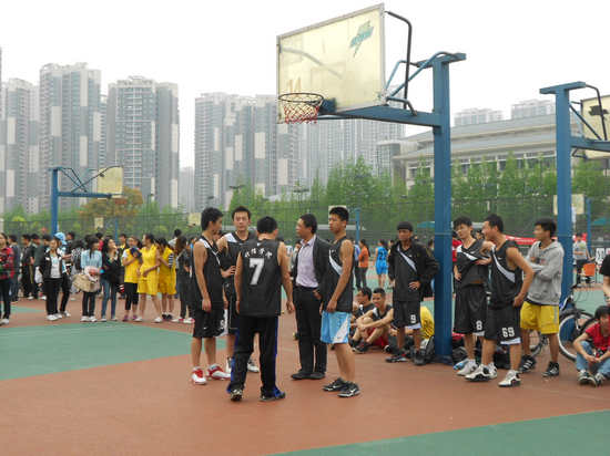 杨宇老师亲自上场与队员们亲切交流,并玩起了趣味投球赛,意在放松大家的心情,更是为了鼓舞。孙柳燕老师也早早地到达女生场地,加油鼓劲。比赛开始,场上气氛迅速升温,各专业的啦啦队热情洋溢,活力四射,呐喊声如球员们的强心剂,他们呐喊着洪亮的口号,为自己的球员们加油。随着裁判的哨声响起,我方男子队的球员们鼓足全劲投入比赛,进攻时拼劲十足,防守时紧紧跟上,没有丝毫懈怠。两方队员势均力敌,彼此不分上下。只见着健儿们不停地拦截、夺取、传递、投篮,一环接一环,毫不松懈。场边的观众们不停地加油较好,掌声一片。而在下半场,sm调教
