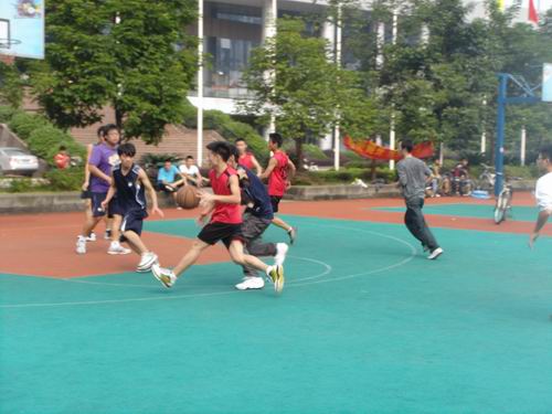 随着裁判的一声哨响拉开了比赛的序幕,争球,中锋将球抢到,传球,前锋一个三步上篮,球进了!进攻、受阻,一次又一次的穷追不舍;防守、抢球,一次又一次的抵抗强烈攻势。场上同学们积极投入、全力以赴、挥洒着汗水,场下的啦啦队员们也毫不松懈,加油助威声此起彼伏,好不热闹,sm调教简介
