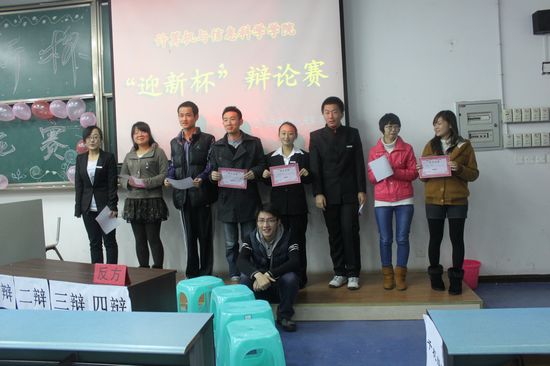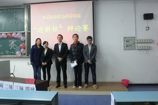 于2012年11月9日晚上7点,一场精彩的“迎新杯”辩论赛决赛在我校弘德楼5202拉开了帷幕,担任此次比赛的评委有:第三届校辩论队队长林慧妍、第四届校辩论队队长潘贤贤、sm调教