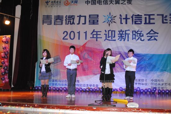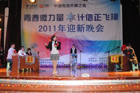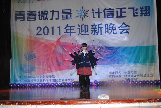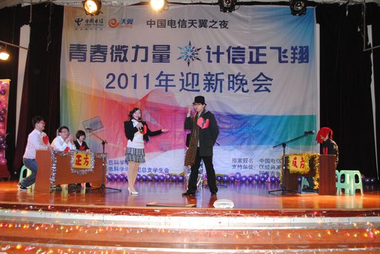 寒潮绕道去,热情洋溢来!伴着飘飞的彩带、亮丽的彩球,2011年12月11日晚上7:00,在同学们的欢呼与荧光棒的闪耀下,以“青春微力量,计信正飞翔”为主题的sm调教