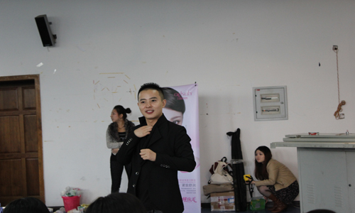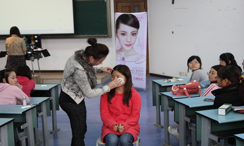 主办的“美丽如此简单”化妆讲座在弘德楼5205教室拉开帷幕。主讲老师是尚惠国际首席技术顾问盛涛。 下午2:00,学校众多女生闻讯而来,准备上一堂别开生面的化妆课。讲座上,盛涛老师首先为现场同学简单讲解了脸部清洁和护理方法,并与大家进行了活跃的互动。为了使大家对化妆有一个更为形象的理解,盛涛老师盛涛老师以及他的专业团队现场选择了三位脸型,面容较为典型的女生进行化妆演示。上妆过程中,同学们紧随老师的手到之处,发出阵阵轻叹声。本次讲座动在女生中引起了较大的反响,都纷纷表示学到很多实用的技巧。