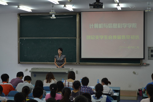 第三届团学会换届选举初选在弘德楼5203拉开帷幕。09级辅导员朱嘉洁、10级辅导员梁圆源以及第二届团总支学生会主席团成员参与了本次活动并担任评委。