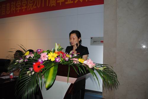 上午9:00,师生们在温馨的乐曲声中观看了影片《2011届毕业汇报》。其后,魏延副院长宣读了《授予学士学位的决定》,由马燕院长为获得学士学位的同学颁发学位证书。紧接着,杨晓红副院长宣读优秀优良毕业生的名单并与台上领导一起为获得者颁发证书,号召低年级同学以他们为榜样,不断进取。随后,陈勇老师作为教师代表作了激情洋溢的发言,希望毕业生走出学校继续保持虚心学习的态度并学会如何更好的与人相处。李朝玲作为学生代表发言,向sm调教简介