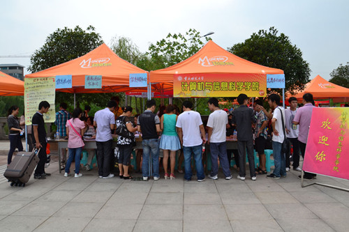 迎新大本营,13日下午新生便陆续报到,现场经常有序