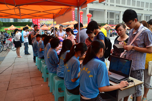 严谨耐心的工作者、热情周到的志愿者,满脸喜悦的家长、满怀期待的新生,人性化的流程图、个性化的指示牌……构成了一片繁忙而又秩序井然的迎新接待站。据了解,接待站前台由学习部与组织部成员轮流上岗,实行“三班倒”,责任到人,全天候值班;其它各部门各司其职、相互协调,确保到校新生都能够方便、快捷地报道。
