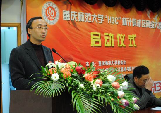 将密切关注比赛的进展情况并协助相关部门开展工作;校领导致辞预祝本次比赛能取得圆满成功。接着校领导与杨毅主任共同宣布了我校“H3C杯计算机及网络大赛”的正式启动并点亮启动球,将本次启动仪式推向高潮。