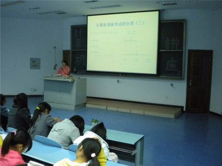 对计算机等级考试感兴趣的同学汇聚一堂,对讲座满怀期待。晚上7:00,讲座在主持人对主讲人进行了简要的介绍后正式开始。赵老师以其通俗易懂的语言特点和风趣诙谐的讲解风格将同学们带入了讲座的主题中,他将一个个生动的例子信手拈来,使大家真正领会到程序设计的奥妙与乐趣。最具代表性的是把数组的应用与房子的建筑联系起来,进行了深入浅出的剖析讲解,赢得同学们的阵阵掌声。