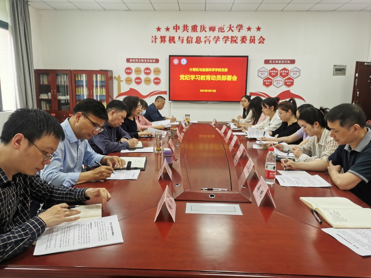党委会前印发了习近平总书记关于全面加强党的建设和党的纪律建设的重要讲话精神等学习资料。会议首先由陈兰领学习近平总书记关于党的纪律建设的重要论述。在全党开展党纪学习教育,是以习近平同志为核心的党中央作出的重大决策,是加强党的纪律建设、推动全面从严治党向纵深发展的重要举措,是党的政治生活中的一件大事。习近平总书记多次就开展党纪学习教育发表重要讲话并作出重要指示,强调要“坚持党性党风党纪一起抓,推进纪律教育常态化,加大《中国共产党纪律处分条例》宣传教育力度,引导广大党员、干部学纪、知纪、明纪、守纪”“组织开展好党纪学习教育,督促领导干部树立正确权力观,公正用权、依法用权、为民用权、廉洁用权”。习近平总书记的重要讲话和重要指示,为开展党纪学习教育提供了重要遵循。陈兰还传达了学校党纪学习教育专题部署会和张艳书记重要讲话精神,组织学习重师委发(2024)18号《关于在全校开展党纪学习教育的实施方案》文件。