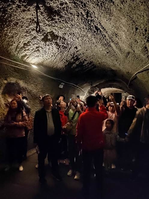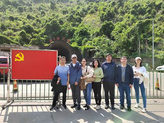 本次春游活动的最后一站来到了涪陵816核工业遗址。在这里,老师们被有着“世界第一大人工洞体”、“深埋山间的绝世和氏璧”、“地下长城”等称号的816地下核工程深深折服。一座巍巍大山,凭借着先辈们的满腔热血将其几乎掏空,挖出总计接近151万立方米的石材,将其一砖一瓦地改造为能够承受住相当于一百万吨当量氢弹的攻击人工洞穴用以开展核工业。天方夜谭般的工业奇观凝聚的是多少人的心血,震撼了所有参观的老师。大家的心情变得格外激动,为老一辈革命家的不惧困难、艰苦奋斗的精神所折服,为他们为国家和人民的安全奉献终生的崇高信念所折服,为我们国家现在的发展和成就而骄傲。