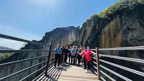 本次春游的第一站首先来到了武陵山大裂谷景区。在这里,绵延数里的绝壁裂缝、造型各异的奇峰怪石、奇绝壮美的深壑幽谷,都令老师们流连忘返,陶醉于大自然的鬼斧神工,感叹祖国山河的壮丽秀美。