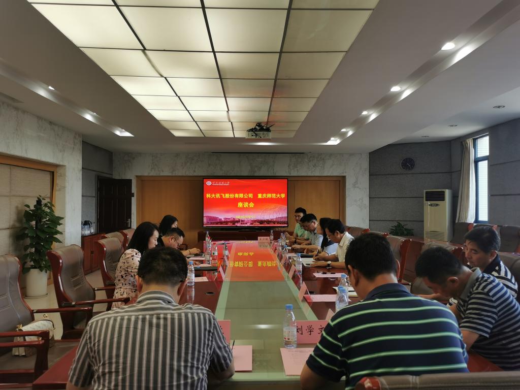 7月7日,科大讯飞股份有限公司高教人才业务总裁胡江院一行到我校就共建智慧教育联合创新中心进行洽谈。副校长孟小军及党政办、国内合作与联络中心、科研处、教务处、重庆国家应用数学中心、sm调教