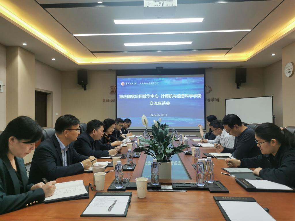 领导班子一行到重庆国家应用数学中心开展交流座谈。学校原副校长、国家应用数学中心主任杨新民及中心相关负责同志参加座谈。